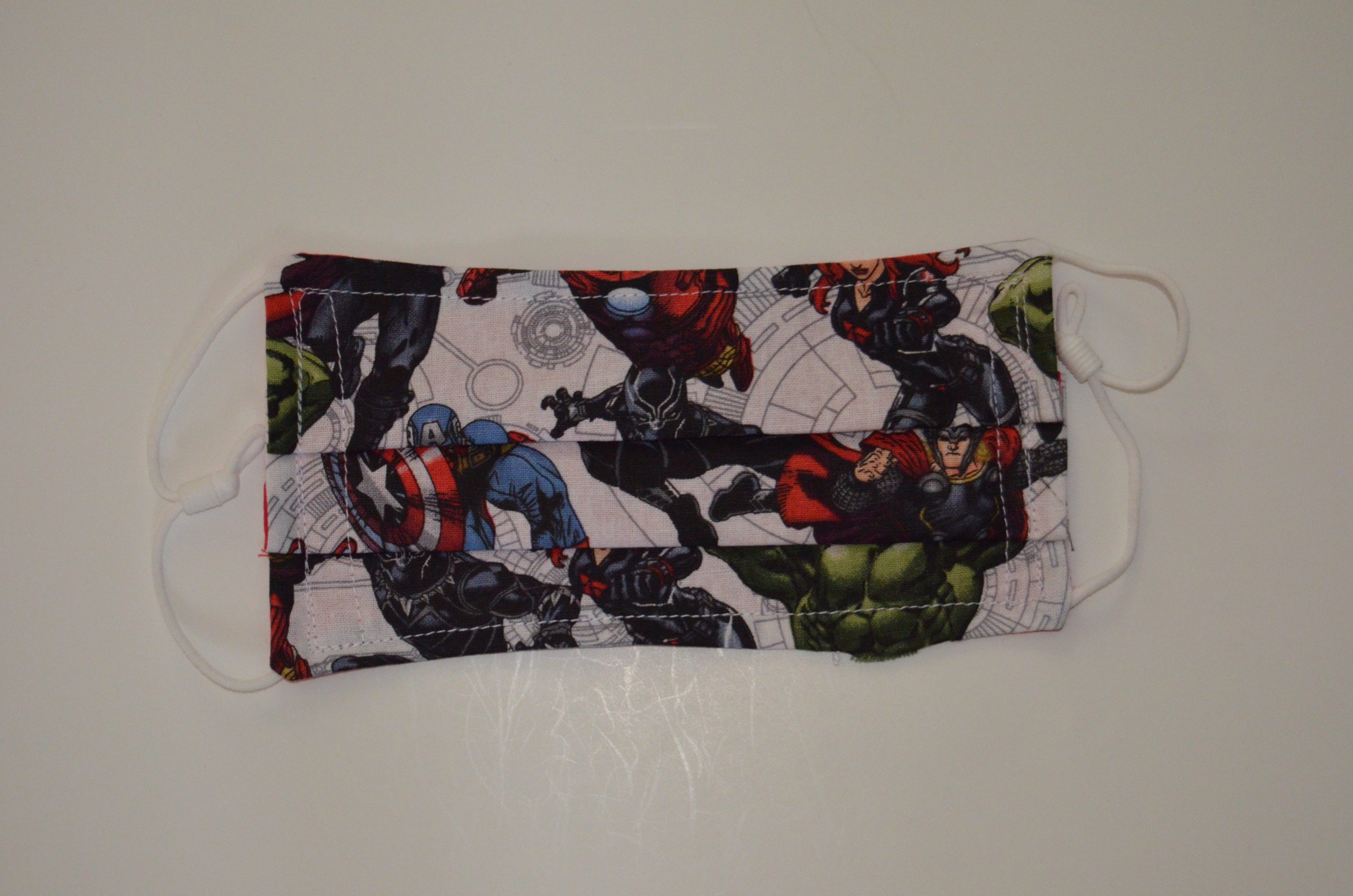Our face masks are two layers of cotton so they are light weight and breathable. They are pleated, machine washable with adjustable soft cotton ear loops. We carry both adult and children’s size masks. We have many patterns to pick from with new ones added weekly. We can also make custom masks by special request, and all masks can be custom lined with flannel for a small additional fee.